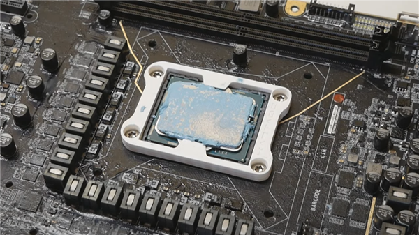 澳大利亚超频高手Karta则改变思路,用高级3D打印机和塑料材料,制作了一个LGA1700插座的支架,从而更精确地调整高度。